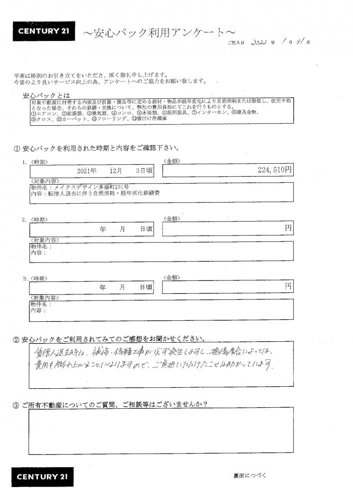 賃借人退去時は、補修・修繕工事が必ず発生しますし、損傷度合によっては、費用も膨れ上がることになりますので、ご負担いただけたことは助かっています。