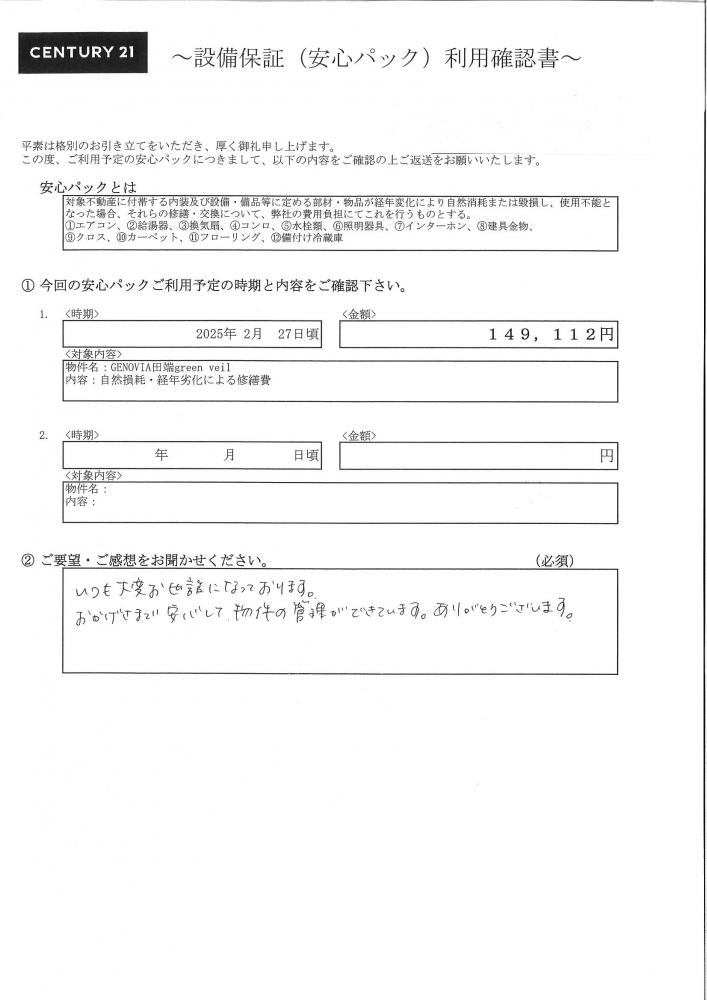 Y・T様 いつも大変お世話になっております。おかげさまで・・・・・。(GENOVIA田端green veil)